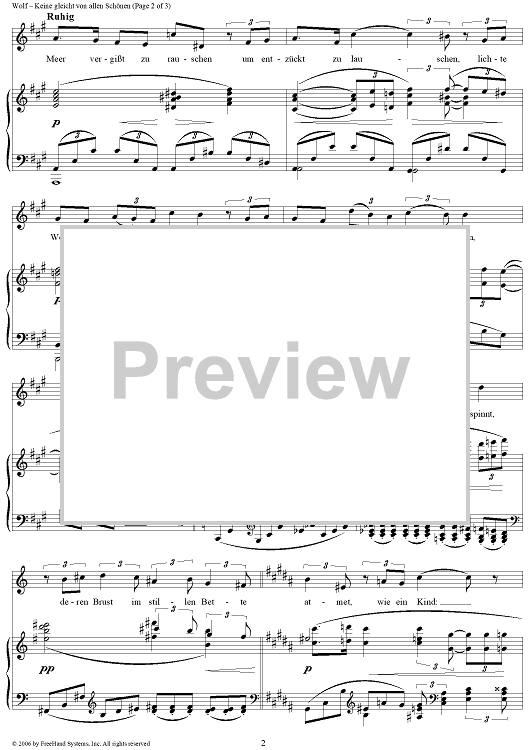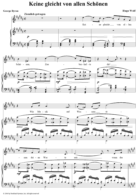 Digital Sheet Music for Keine gleicht von allen Schönen, No. 4 by Hugo Wolf, Lord Byron scored for Voice/Piano; id:318863