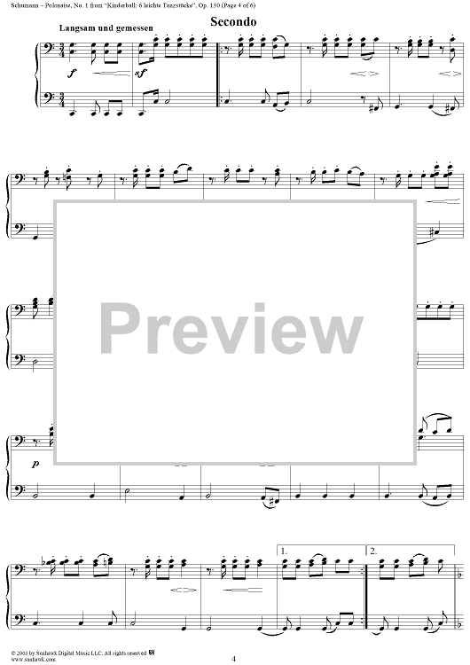 Digital Sheet Music for Kinderball, No. 1: Polonaise by Robert Schumann scored for 1 Piano, 4 Hands; id:294479