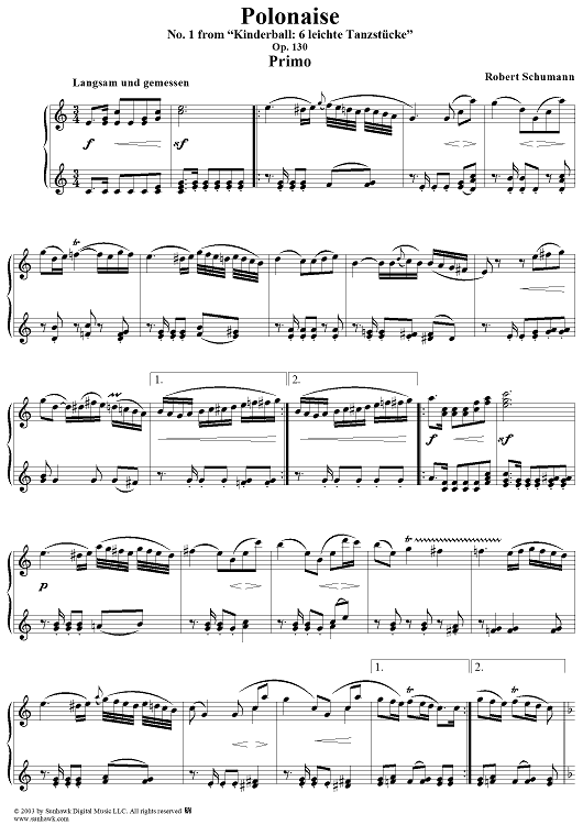 "Kinderball, No. 1: Polonaise" Sheet Music by Robert Schumann
