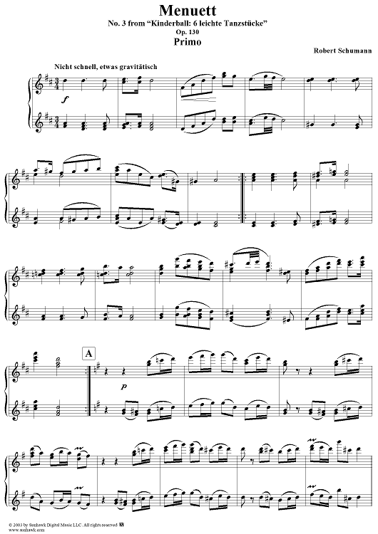 "Kinderball, No. 3: Menuett" Sheet Music by Robert Schumann