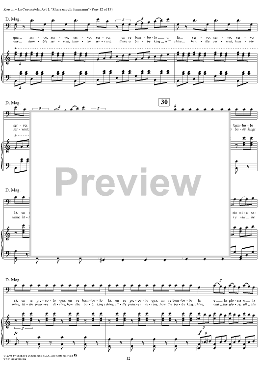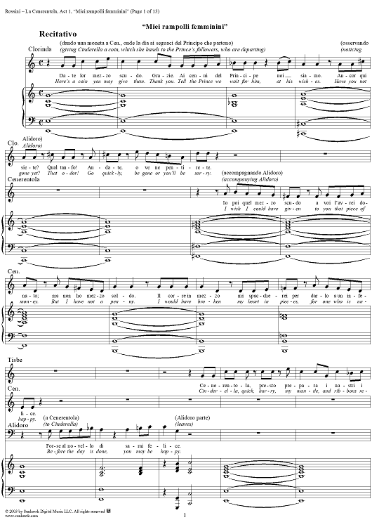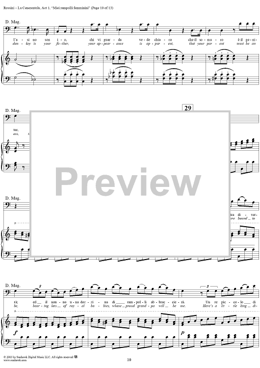 Digital Sheet Music for La Cenerentola, Act 1, Recitative and Cavatina - Don Magnifico - Vocal Score by Gioachino Rossini, Jacopo Ferretti scored for Voice/Piano; id:290986