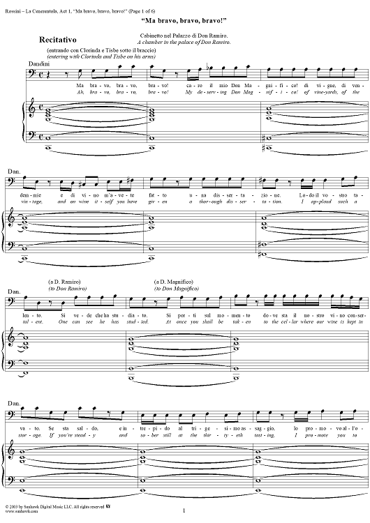 Digital Sheet Music for La Cenerentola, Act 1, Recitative - Vocal Score by Gioachino Rossini, Jacopo Ferretti scored for Voice/Piano; id:290995