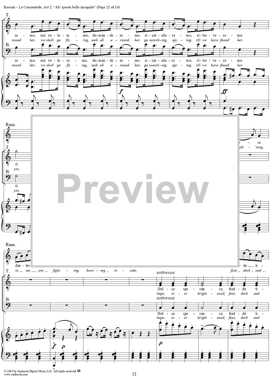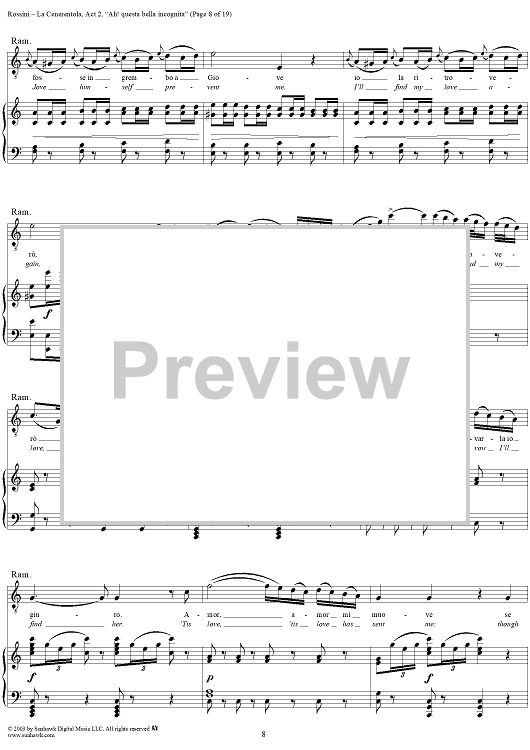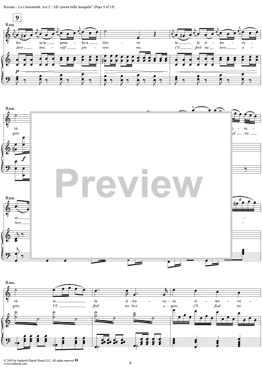 Digital Sheet Music for La Cenerentola, Act 2, Recitative, Scene and Aria - Don Ramiro - Vocal Score by Gioachino Rossini, Jacopo Ferretti scored for Voice/Piano; id:291002