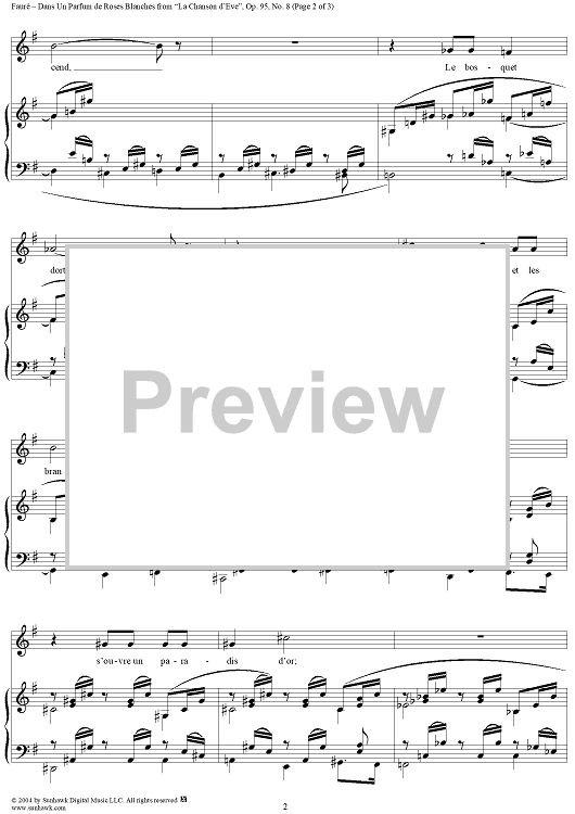 Digital Sheet Music for La Chanson d'Ève: Dans Un Parfum de Roses Blanches by Gabriel Fauré, Charles van Lerberghe scored for Voice/Piano; id:297673