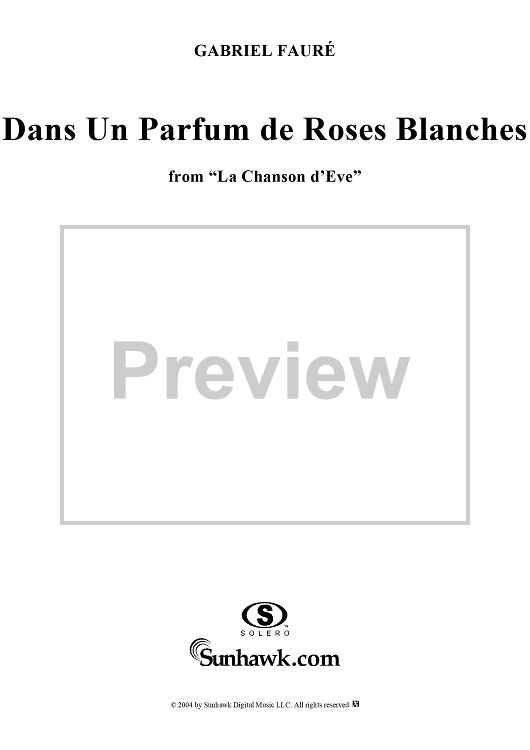 "La Chanson d'Ève: Dans Un Parfum de Roses Blanches" Sheet Music by Gabriel Fauré