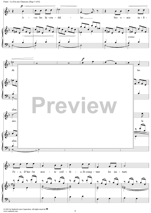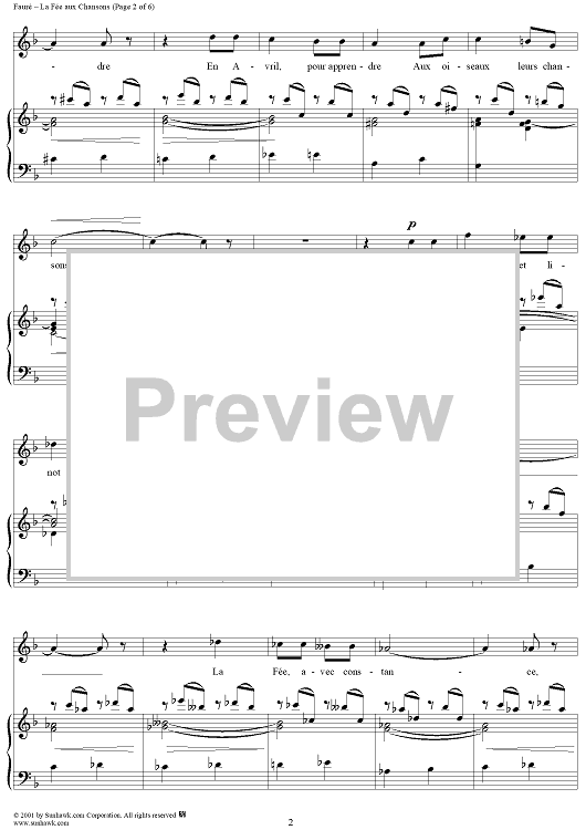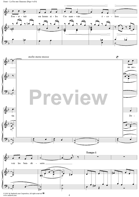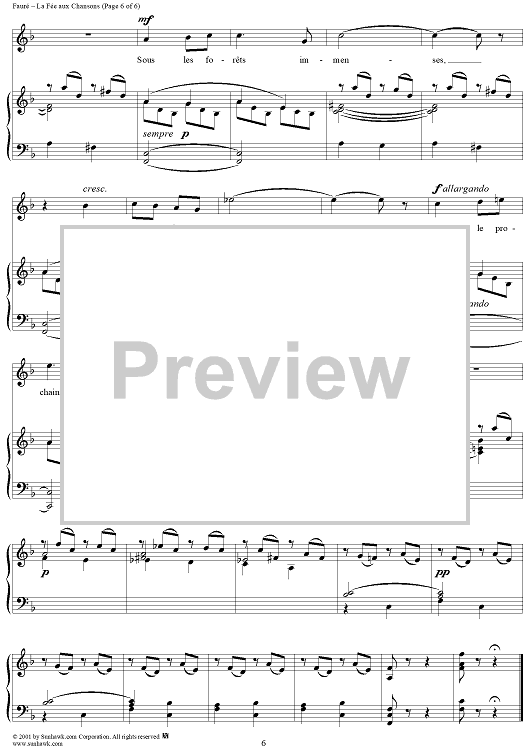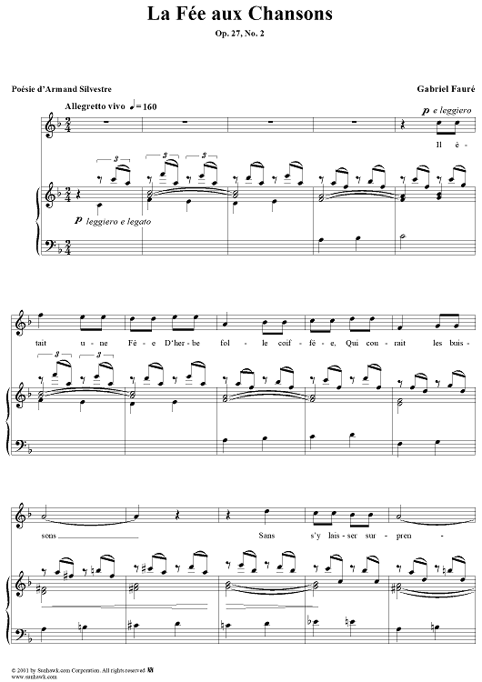 Digital Sheet Music for La Fée aux Chansons by Gabriel Fauré, Armand Silvestre scored for Voice/Piano; id:189393