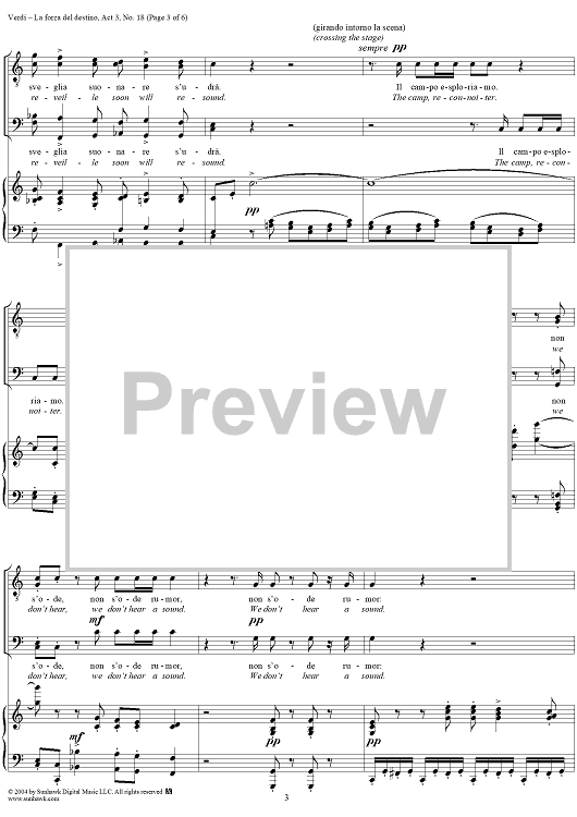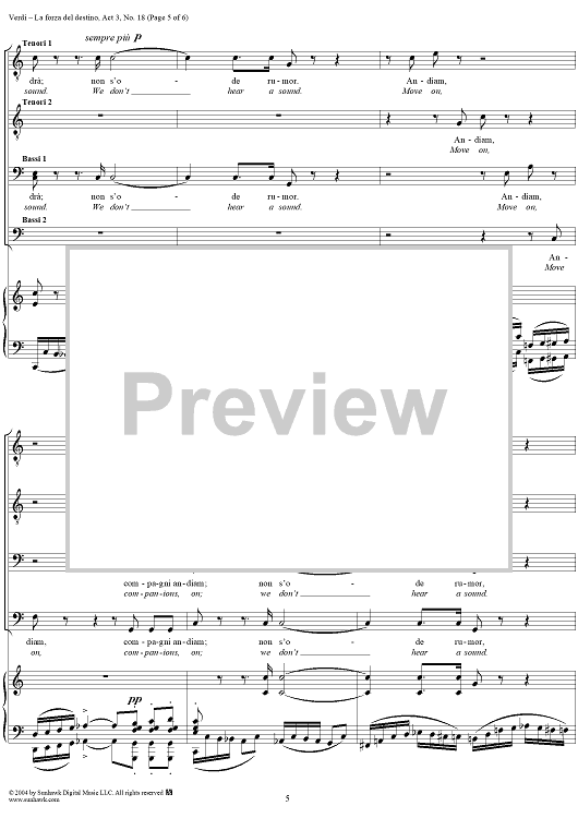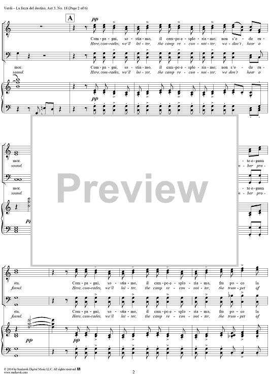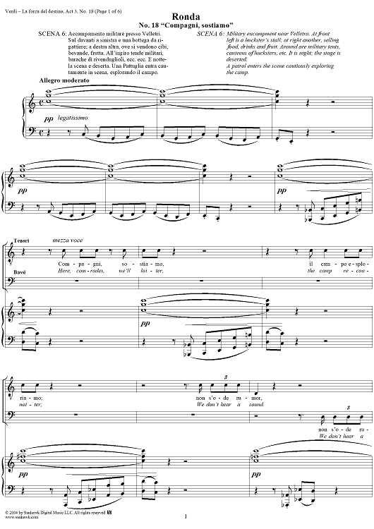 Digital Sheet Music for La forza del destino, Act 3, No. 18, Round. "Compagni, sostiamo" - Score by Giuseppe Verdi scored for Vocal Score; id:305200