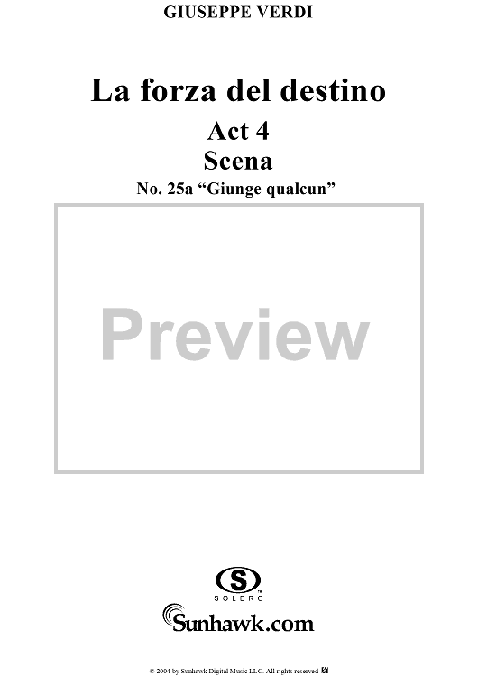 "La forza del destino, Act 4, Nos. 25a and 25b, Scene. "Giunge gualcun" and "Siete il portiere?" - Score" Sheet Music by Giuseppe Verdi