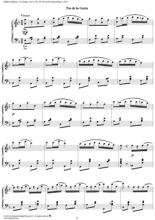 Digital Sheet Music for La Source, Act 1, No. 6b: Pas de la Guzla by Léon Minkus, Leo Delibes scored for Piano Solo; id:295476
