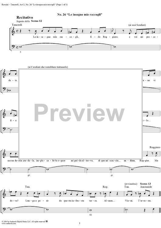 Digital Sheet Music for Le insegne mie raccogli: No. 26 from "Tancredi", Act 2, Scene 12 - Score by Gioachino Rossini scored for Voice/Piano; id:302889