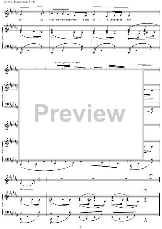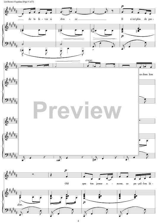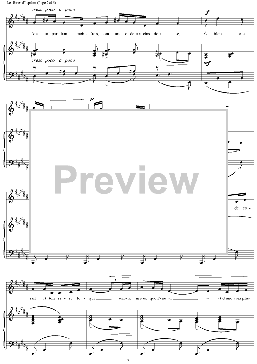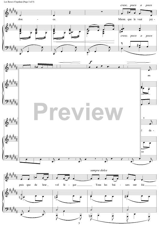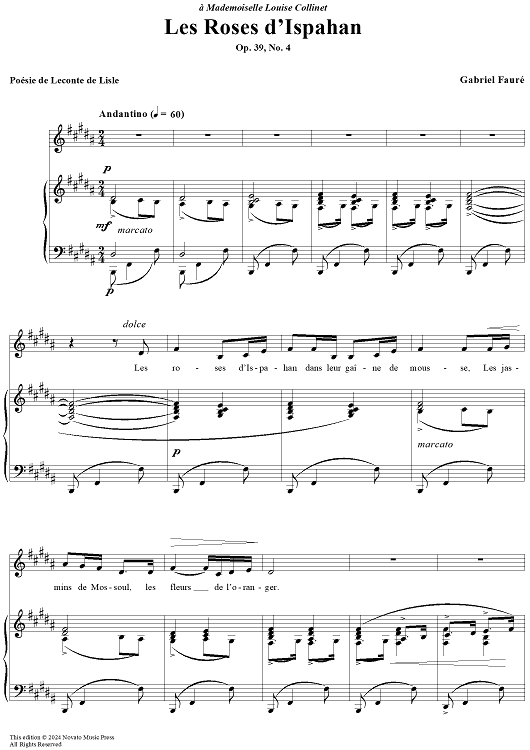 Digital Sheet Music for Les Roses d'Ispahan (Low voice) by Gabriel Fauré, Leconte de Lisle scored for Voice/Piano; id:501663