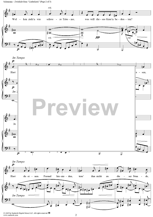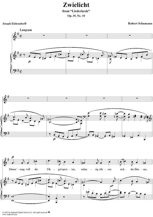 Digital Sheet Music for Liederkreis, Op. 39: No. 10, Zwielicht by Joseph von Eichendorff, Robert Schumann scored for Voice/Piano; id:306965