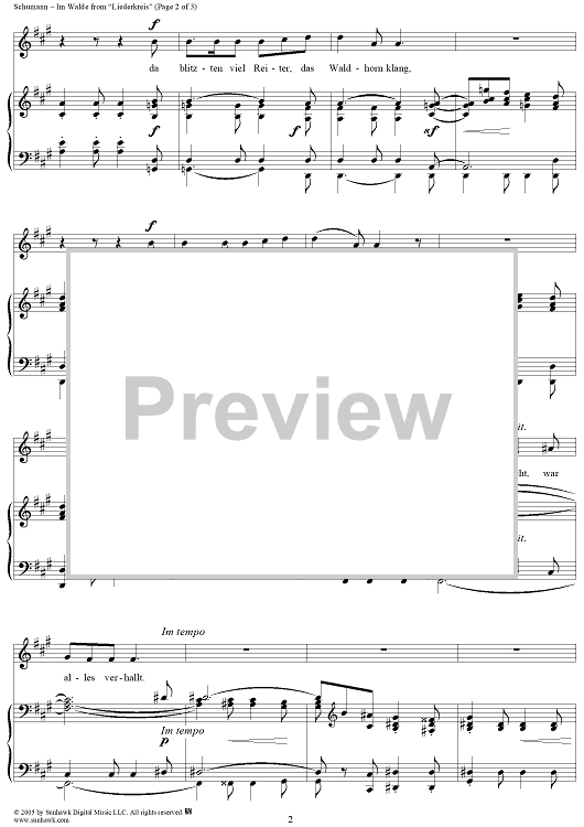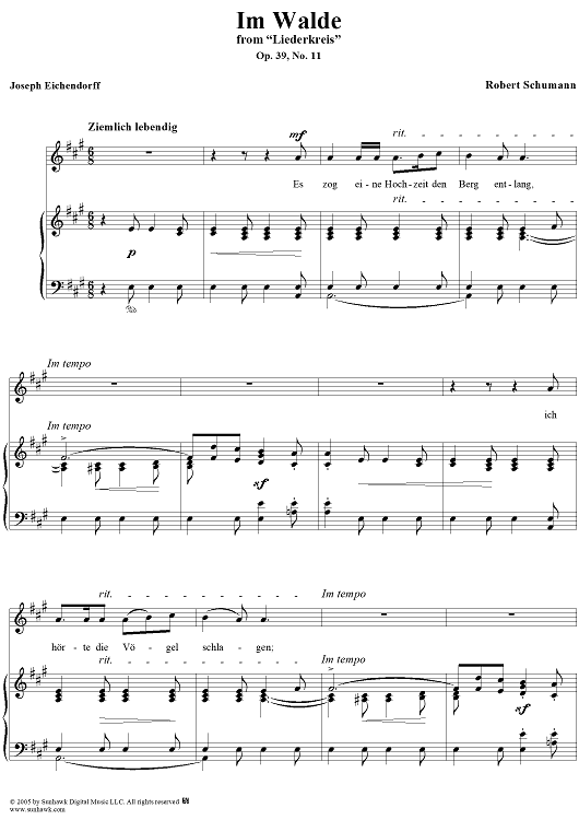 Digital Sheet Music for Liederkreis, Op. 39: No. 11, Im Walde by Joseph von Eichendorff, Robert Schumann scored for Voice/Piano; id:306966