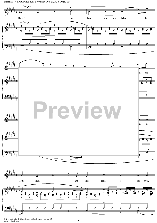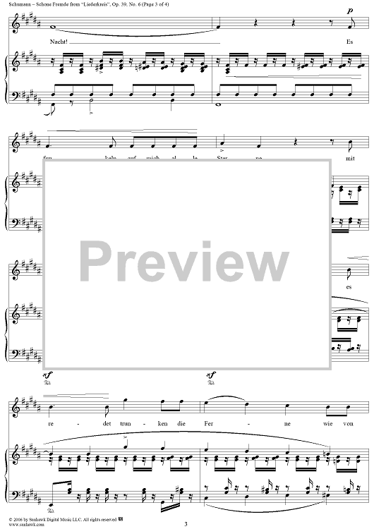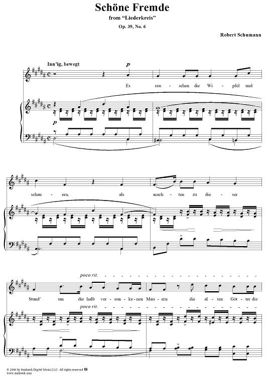 Digital Sheet Music for Liederkreis, Op. 39: No. 6, Schöne Fremde by Joseph von Eichendorff, Robert Schumann scored for Voice/Piano; id:306961