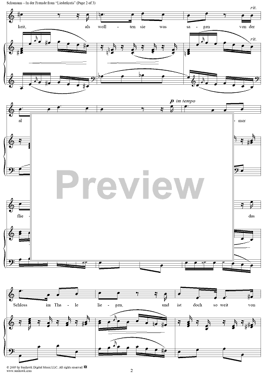 Digital Sheet Music for Liederkreis, Op. 39: No. 8, In der Fremde by Joseph von Eichendorff, Robert Schumann scored for Voice/Piano; id:306963