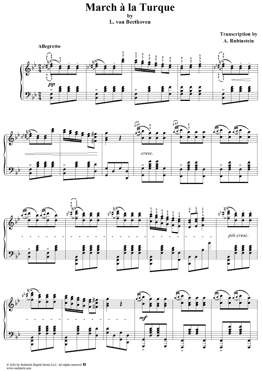 Digital Sheet Music for Marche à la Turque by Anton Rubinstein scored for Piano Solo; id:266268