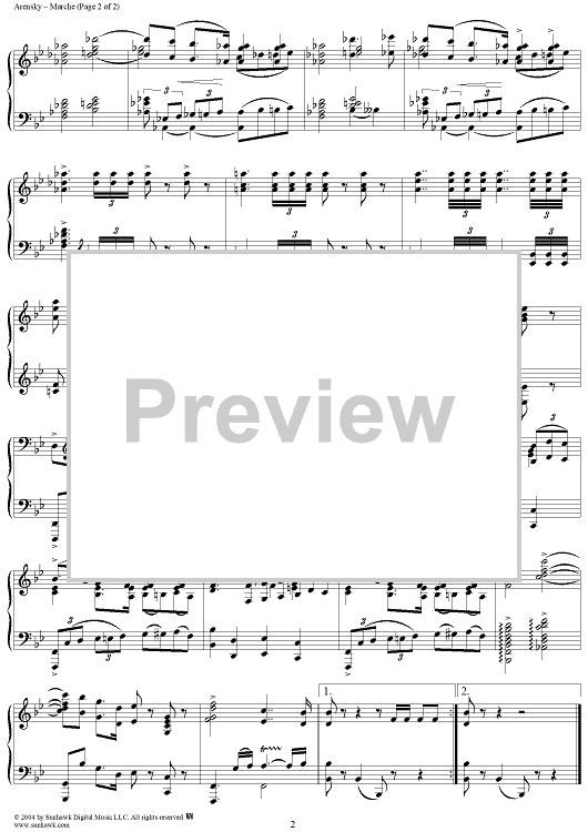 Digital Sheet Music for Marche, No. 21 from "Twenty Four Morceau Characteristiques", Op. 36 by Anton Arensky scored for Piano Solo; id:295122