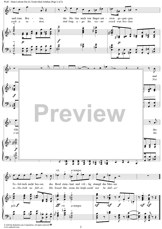 Digital Sheet Music for Mein Liebster hat zu Tische mich geladen, No. 25 from "Italienisches Liederbuch, nach Paul Heyse", Part 2 by Hugo Wolf, Paul Heyse scored for Voice/Piano; id:263401