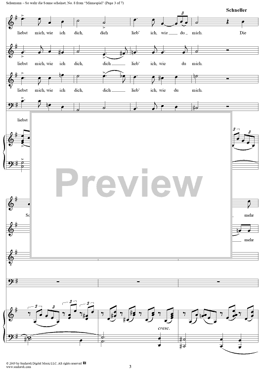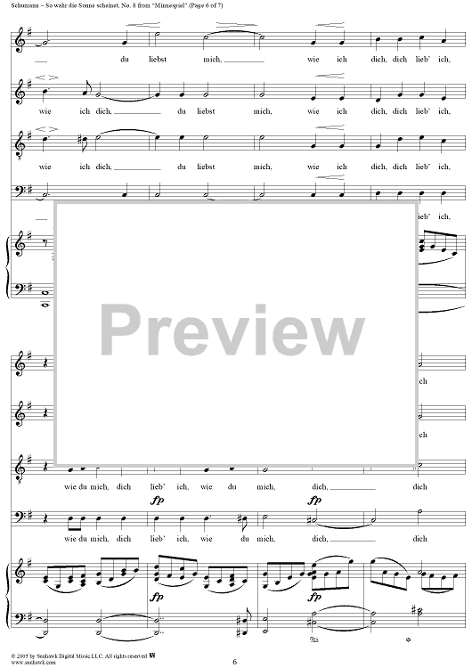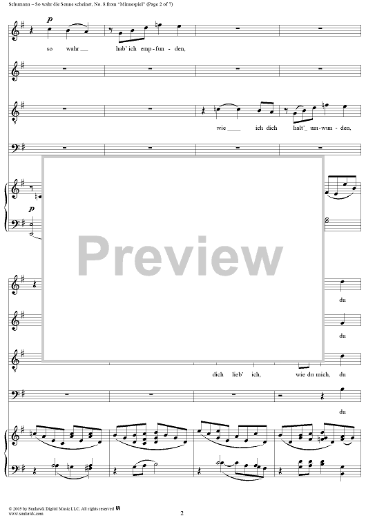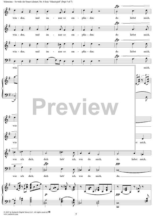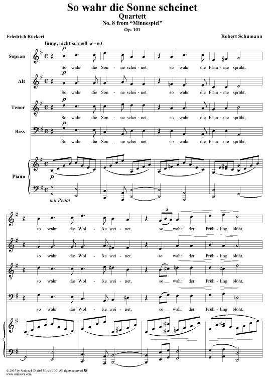 Digital Sheet Music for Minnespiel, Op. 101: No. 8, Quartett "So wahr die Sonne scheinet" by Friedrich Rückert, Robert Schumann scored for Voice/Piano; id:306942