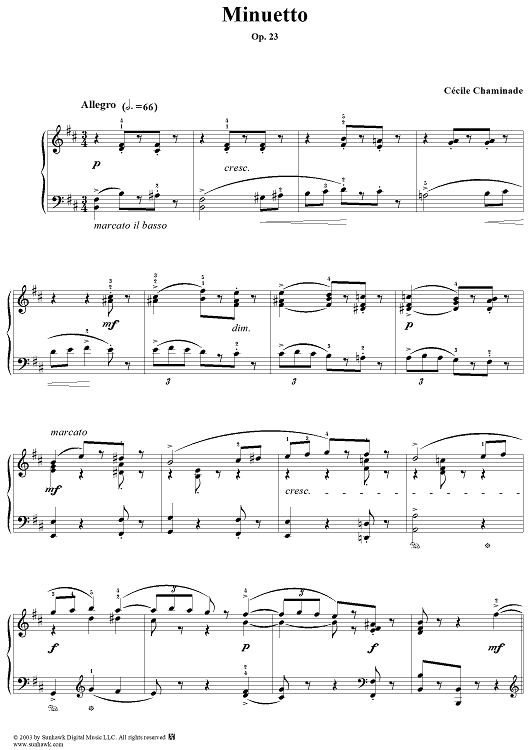 "Minuetto, Op. 23" Sheet Music by Cécile Chaminade
