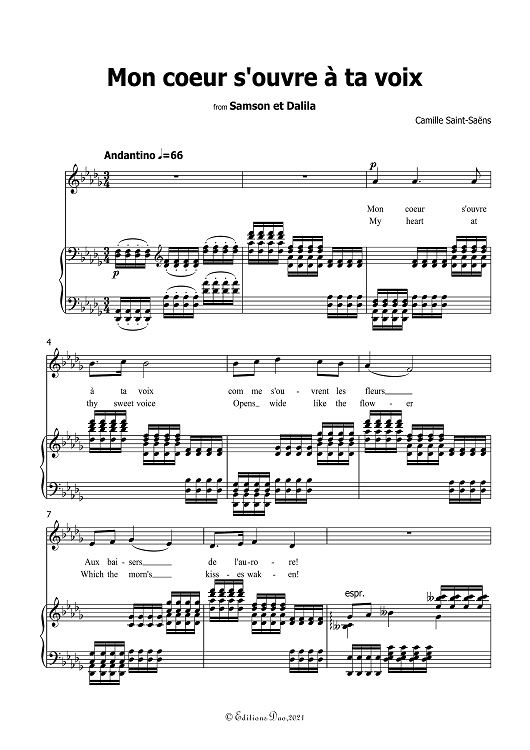 "Mon coeur s'ouvre à ta voix" from 'Samson et Dalila' (Op. 47) in D flat Major, for Voice and Piano