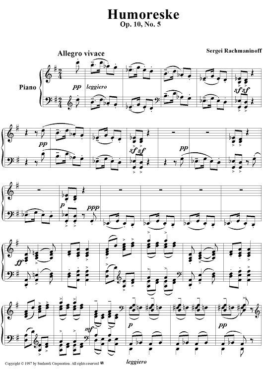 "Morceaux de salon, op. 10, no. 5: Humoresque" Sheet Music by Sergei Rachmaninoff