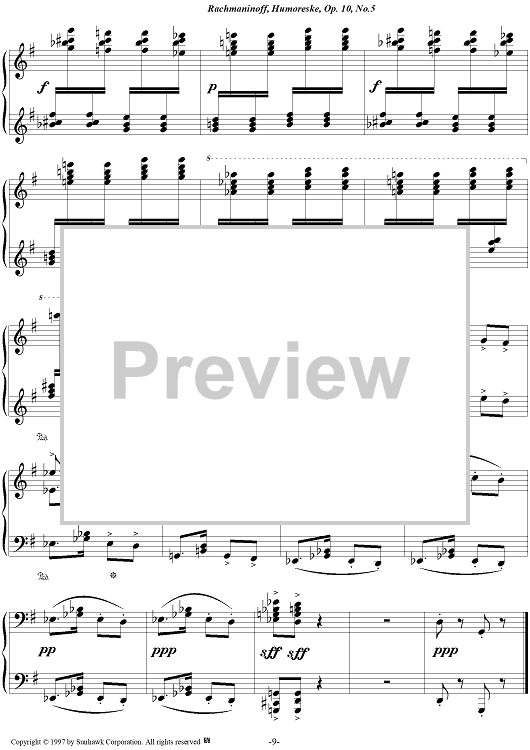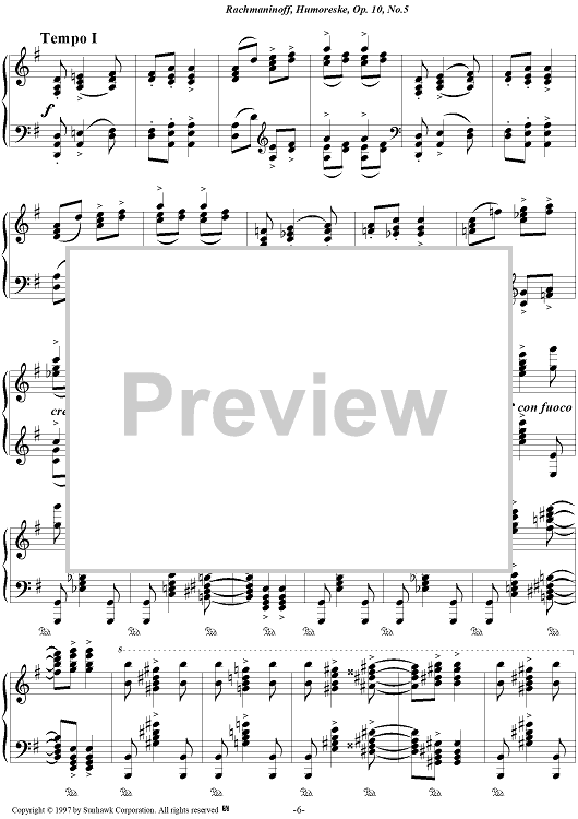 Digital Sheet Music for Morceaux de salon, op. 10, no. 5: Humoresque by Sergei Rachmaninoff scored for Piano Solo; id:94638