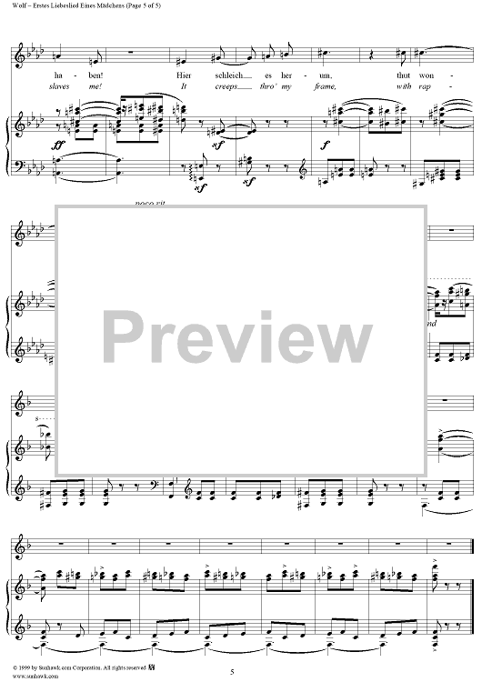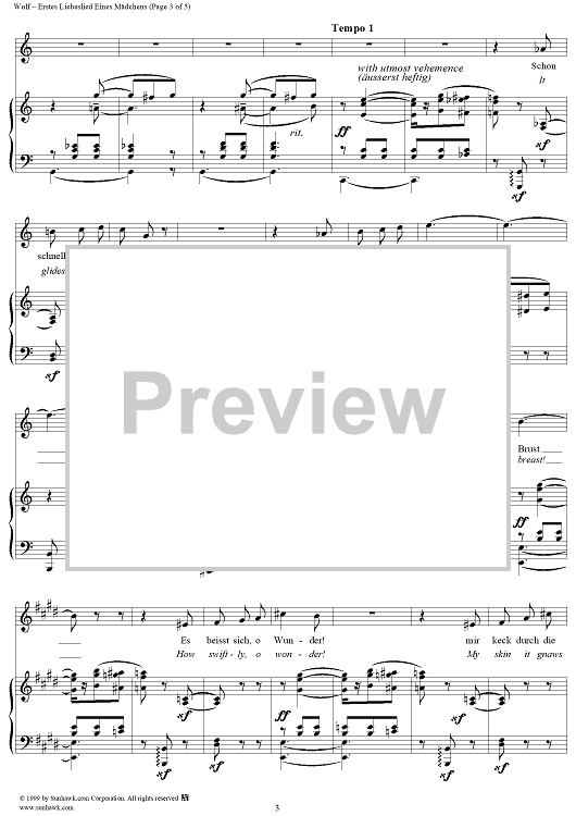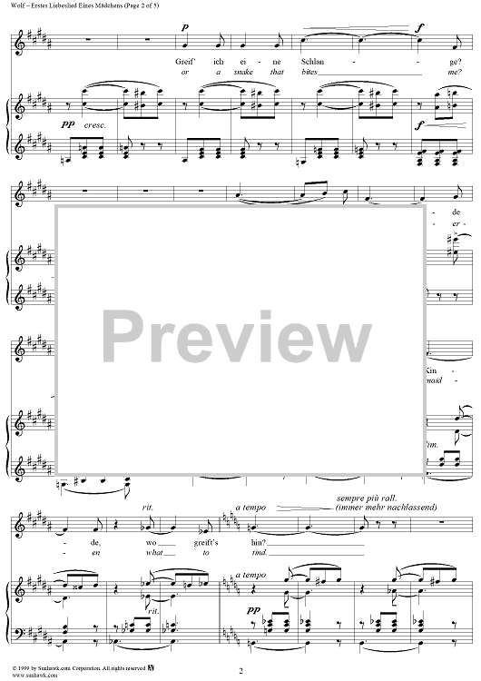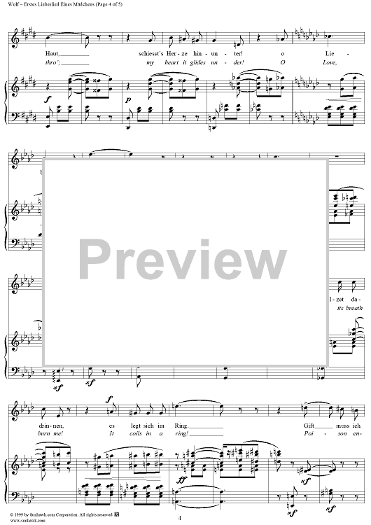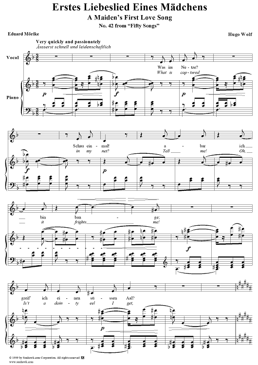 Digital Sheet Music for Mörike Lieder, No. 42 - Erstes Liebeslied Eines Mädchens by Hugo Wolf, Eduard Mörike scored for Voice/Piano; id:263441