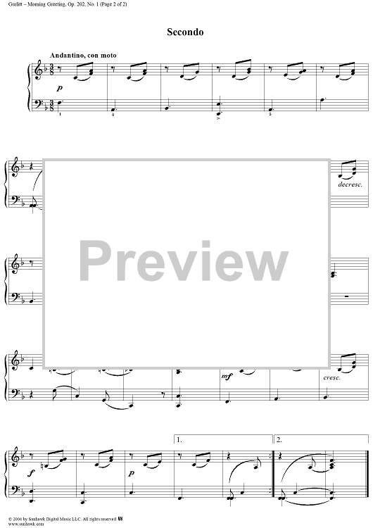 Digital Sheet Music for Morning Greeting, No. 1 from "Stray Leaves", Op. 202 by Cornelius Gurlitt scored for 1 Piano, 4 Hands; id:303881
