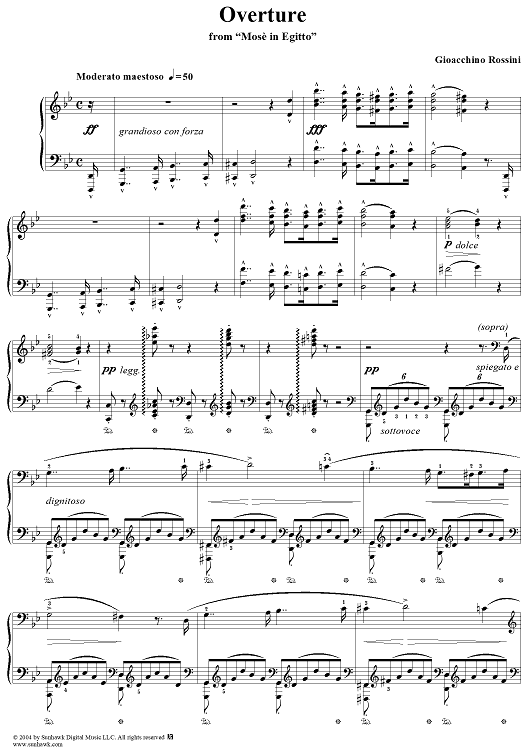 Digital Sheet Music for Mosè in Egitto, Overture by Gioachino Rossini scored for Piano Solo; id:295539
