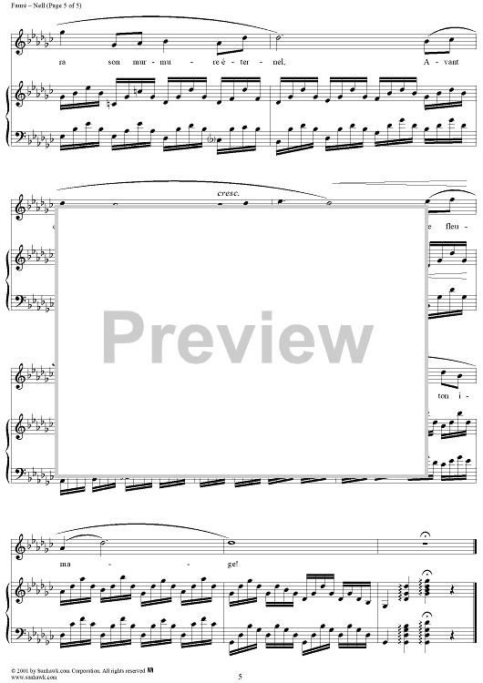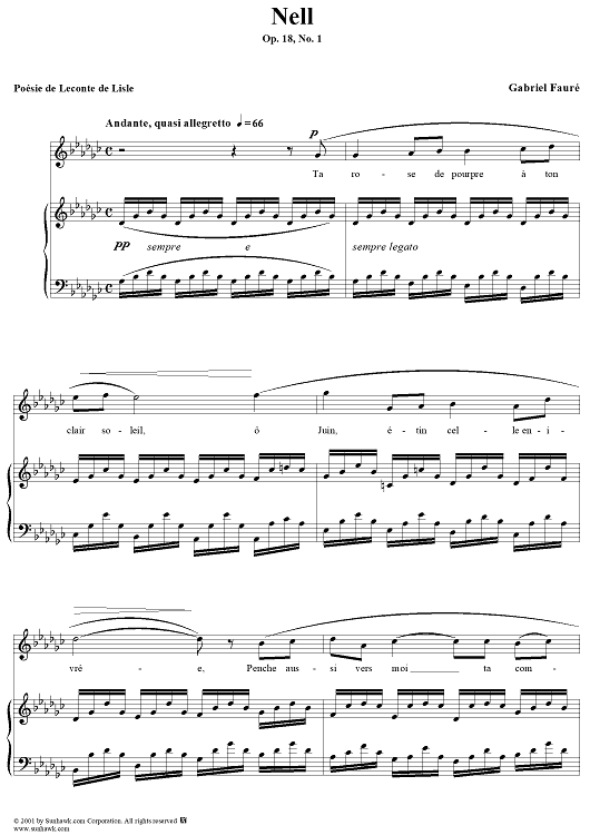 Digital Sheet Music for Nell by Gabriel Fauré, Leconte de Lisle scored for Voice/Piano; id:189376
