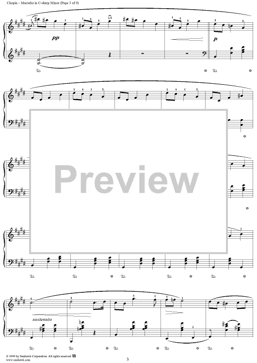 Digital Sheet Music for No. 32 in C-sharp Minor, Op. 50, No. 3 by Frederic Chopin scored for Piano Solo; id:118085