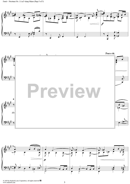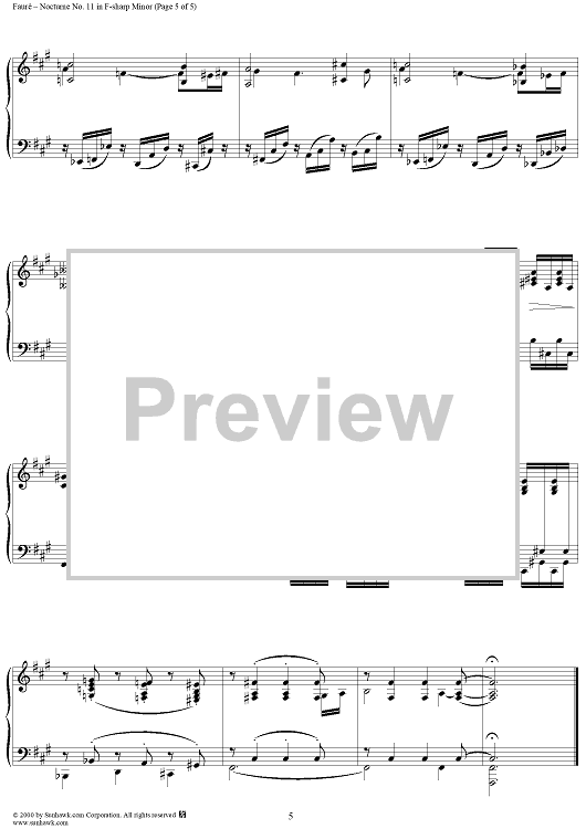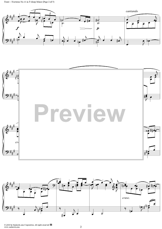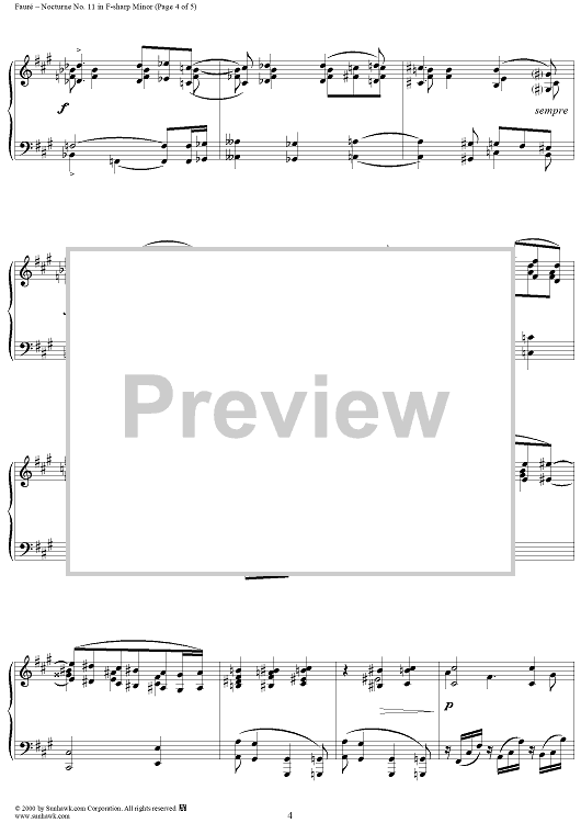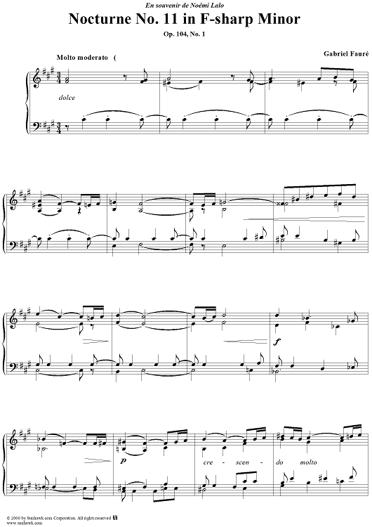 Digital Sheet Music for Nocturne No. 11 in F Sharp Minor, Op. 104, No. 1 by Gabriel Fauré scored for Piano Solo; id:240839