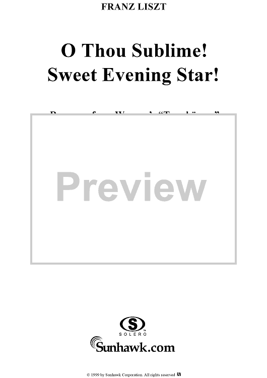 "O Thou Sublime! Sweet Evening Star!" Sheet Music by Franz Liszt