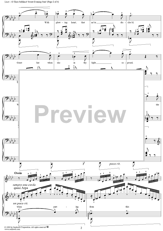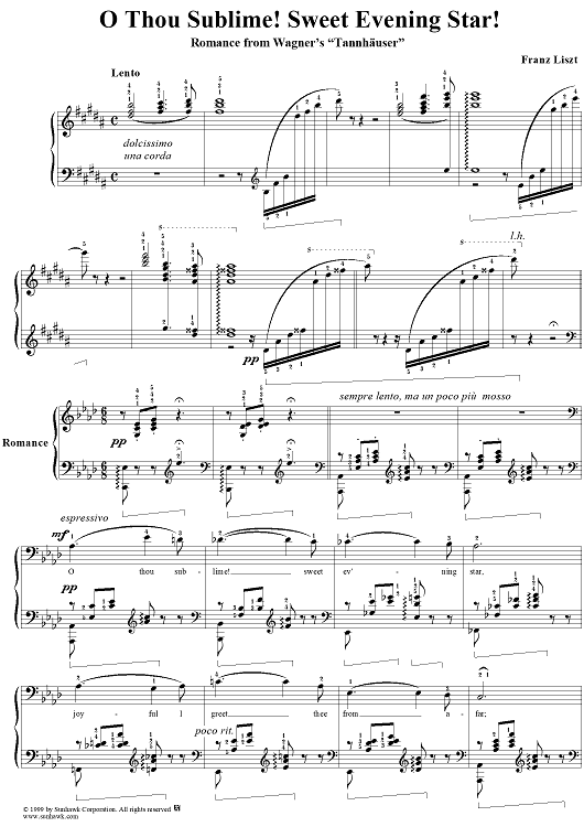 Digital Sheet Music for O Thou Sublime! Sweet Evening Star! by Franz Liszt scored for Piano Solo; id:160006