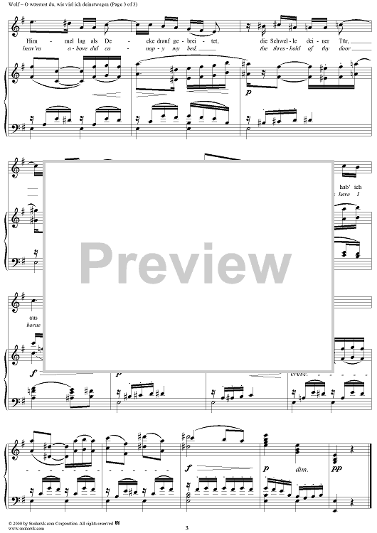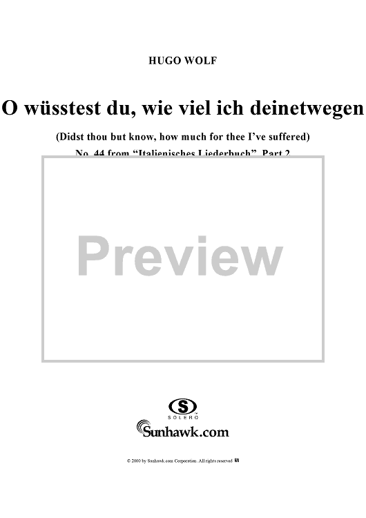 Digital Sheet Music for O wüsstest du, wie viel ich deinetwegen, No. 44 from "Italienisches Liederbuch, nach Paul Heyse", Part 2 by Hugo Wolf scored for Voice/Piano; id:273243