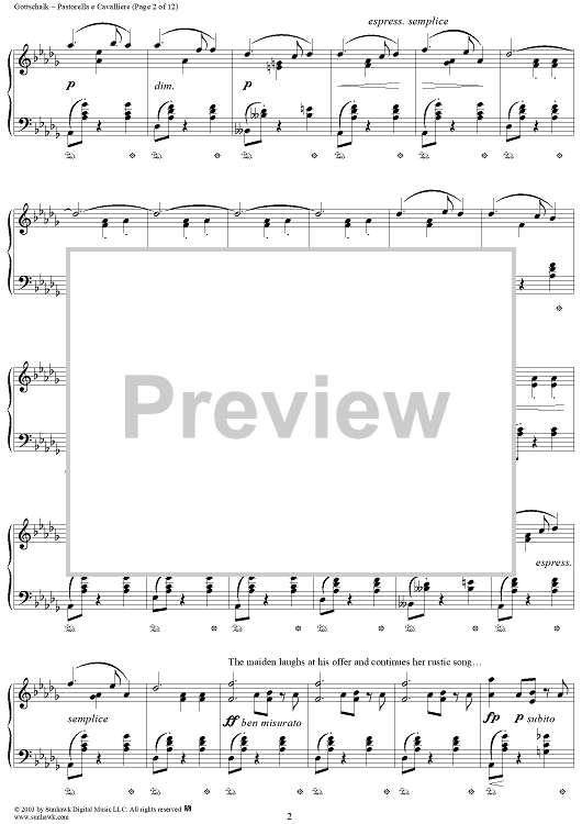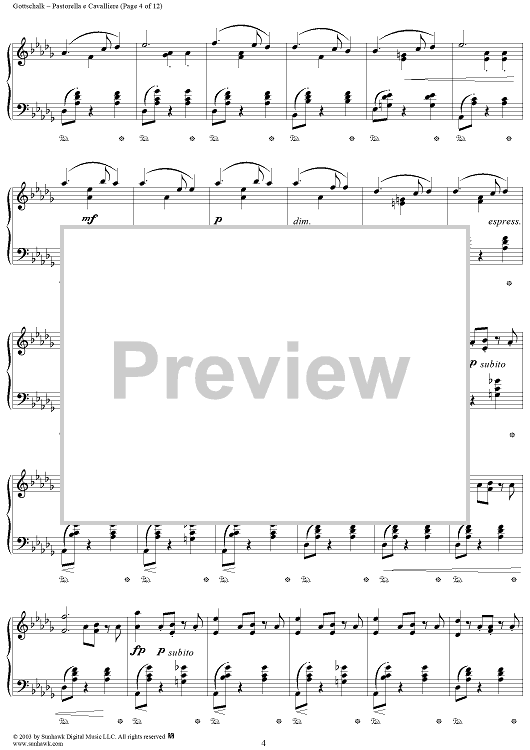 Digital Sheet Music for Pastorella e Cavalliere, Op. 32 by Louis Moreau Gottschalk scored for Piano Solo; id:294814