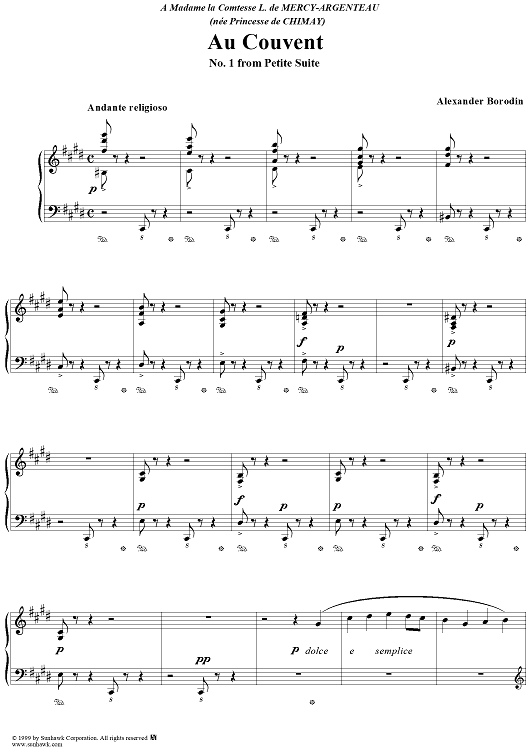 "Petite Suite no. 1: Au Couvent" Sheet Music by Alexander Borodin