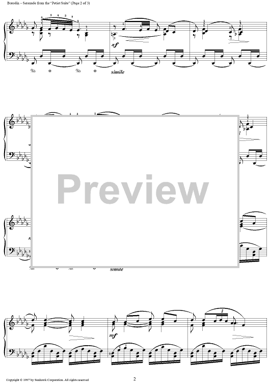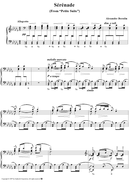 Digital Sheet Music for Petite Suite no. 5: Sérénade by Alexander Borodin scored for Piano Solo; id:94929