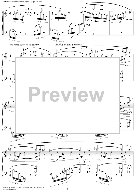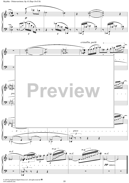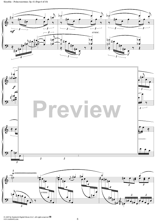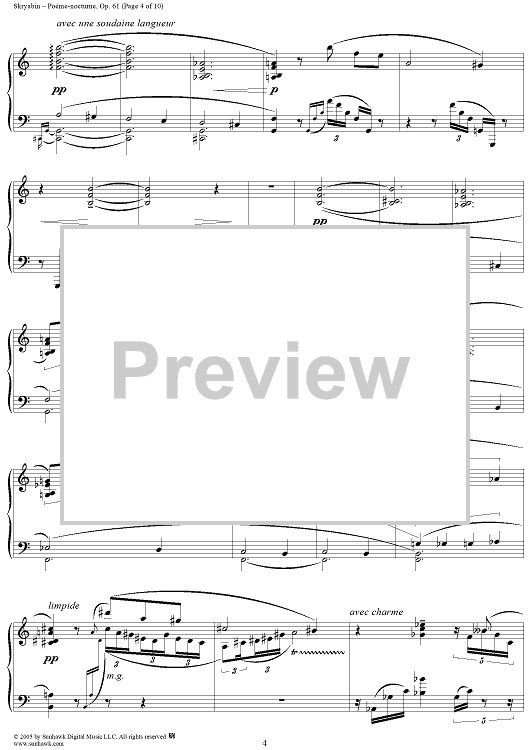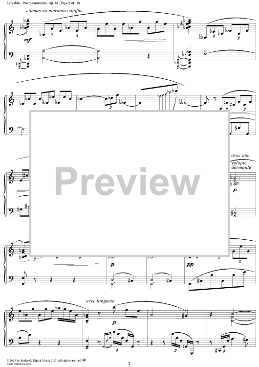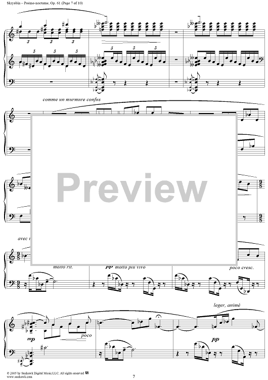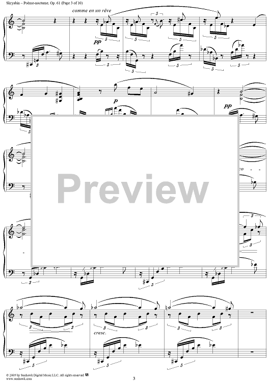 Digital Sheet Music for Poem Nocturne, Op. 61 by Alexander Scriabin scored for Piano Solo; id:311380