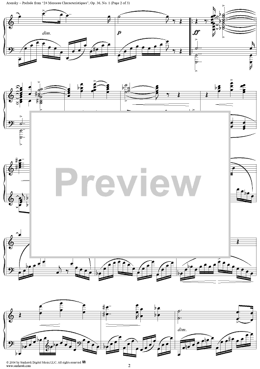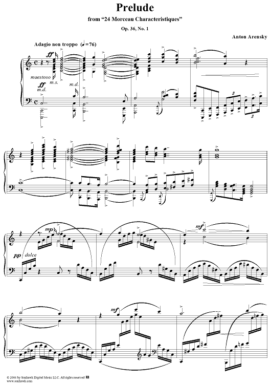 Digital Sheet Music for Prelude, No. 1 from "Twenty Four Morceau Characteristiques", Op. 36 by Anton Arensky scored for Piano Solo; id:295113
