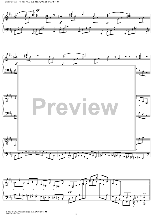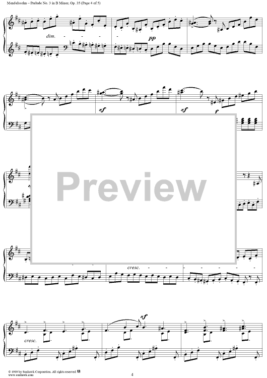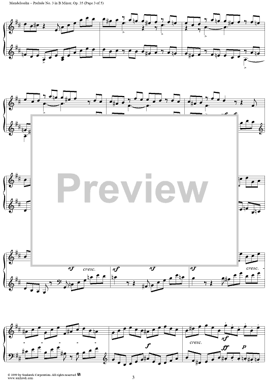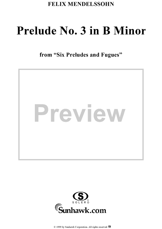 Digital Sheet Music for Prelude no. 3 in B minor by Felix Mendelssohn scored for Piano Solo; id:113366