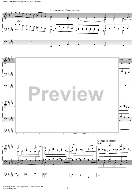 Digital Sheet Music for Prière in C-sharp minor, op. 20 by César Franck scored for Organ Solo; id:235097