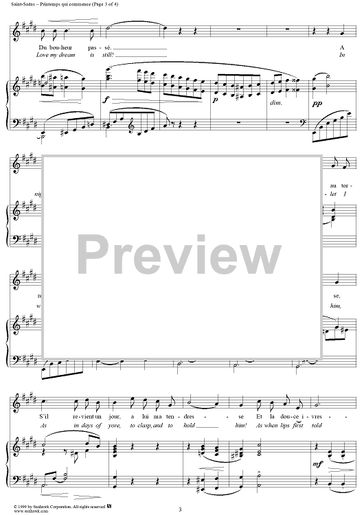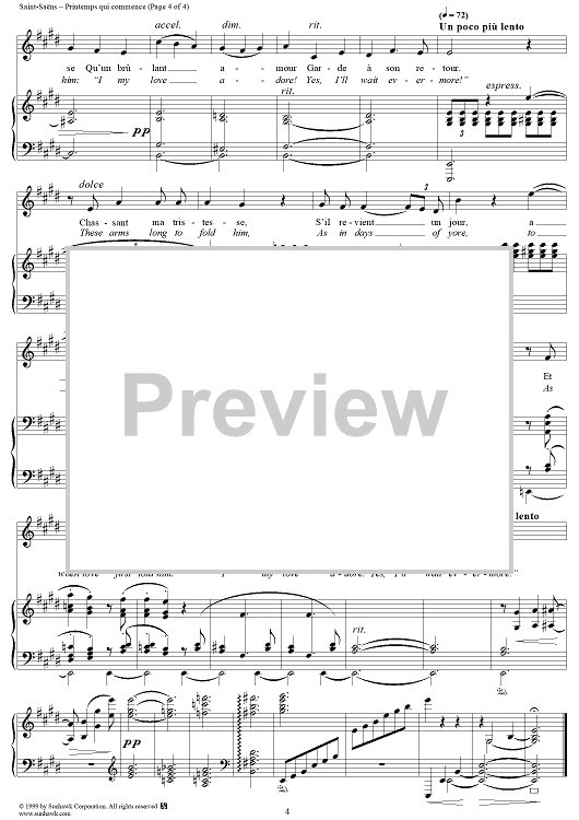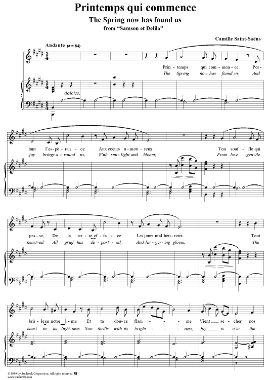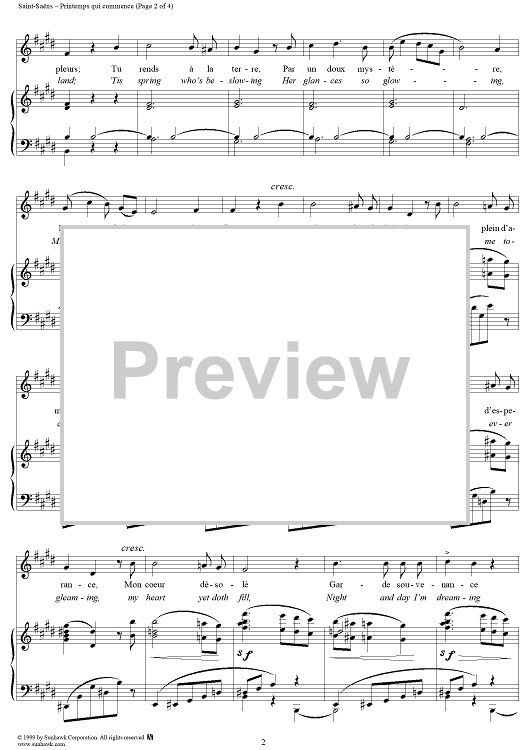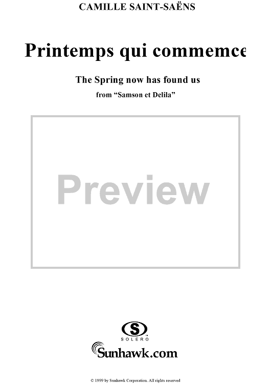 Digital Sheet Music for Printemps qui commence by Camille Saint-Saëns scored for Voice/Piano; id:118288