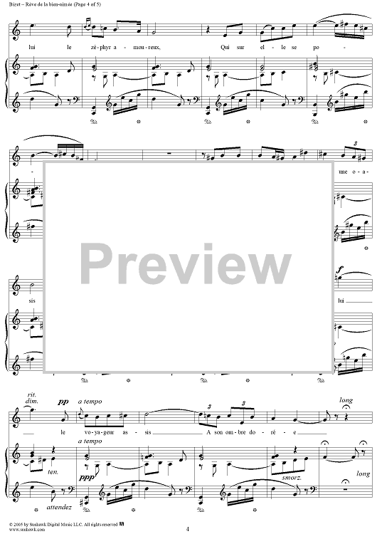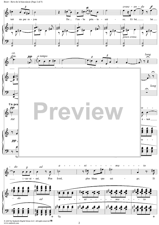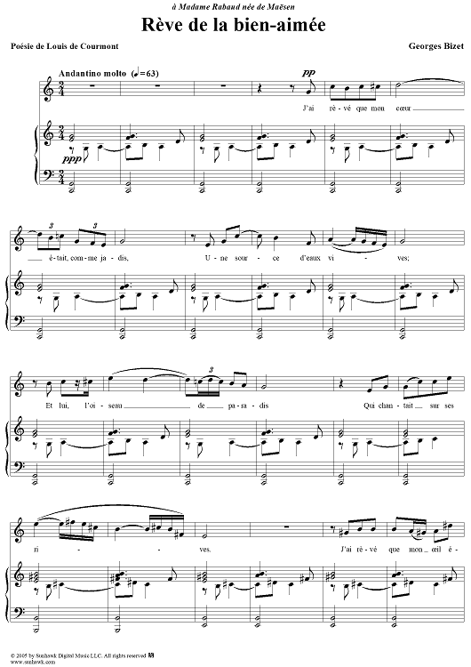 Digital Sheet Music for Rêve de la bin-aimée by Georges Bizet, Louis De Courmont scored for Voice/Piano; id:305208