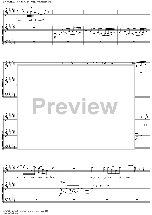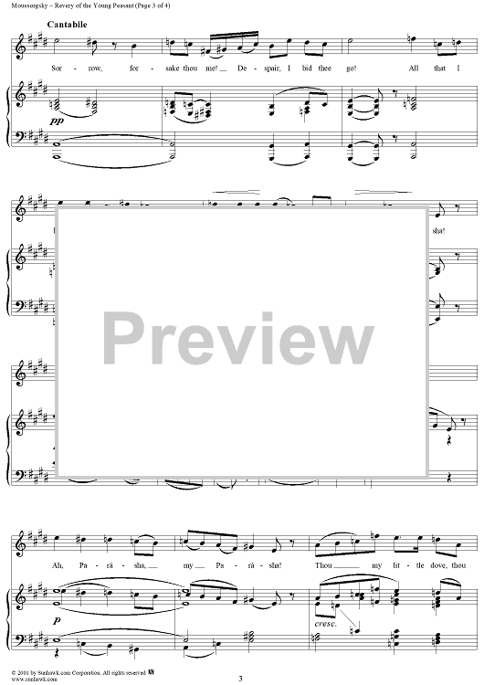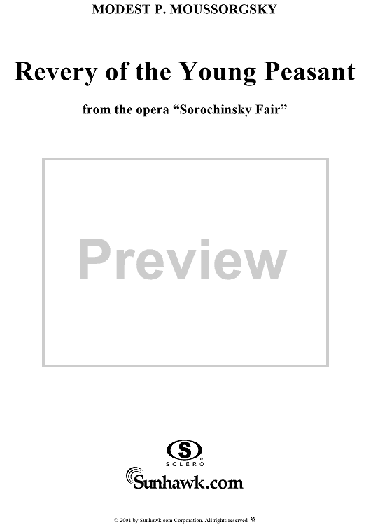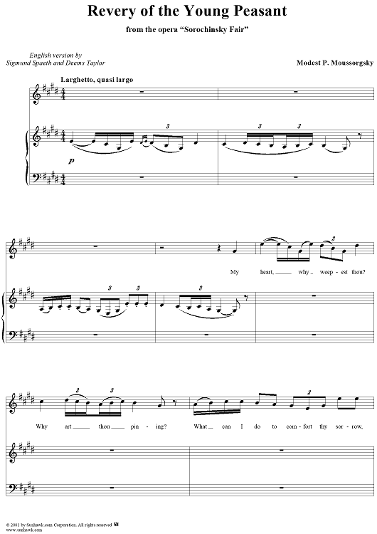 Digital Sheet Music for Revery of the Young Peasant, from the opera "Sorochinsky Fair" by Modest Musorgsky scored for Voice/Piano; id:271774