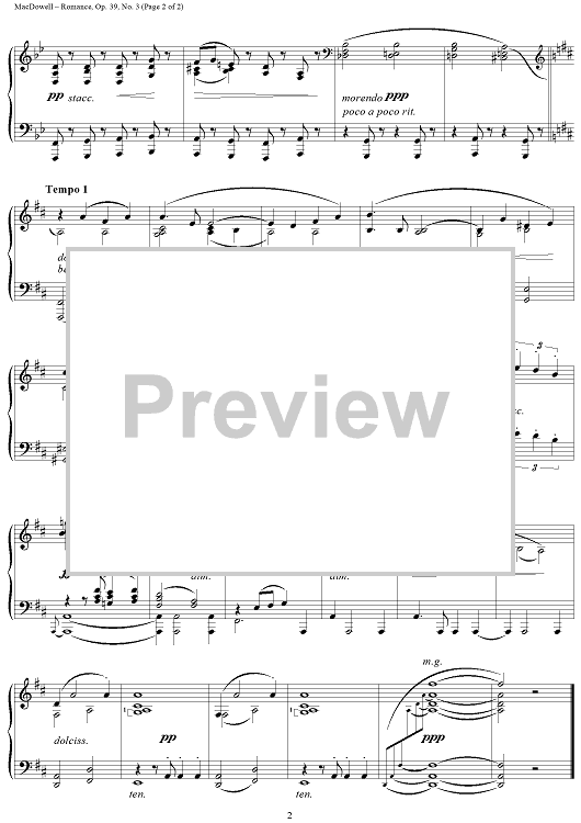 Digital Sheet Music for Romance from Twelve Etudes, Op. 39, No. 3 by Edward MacDowell scored for Piano Solo; id:251833