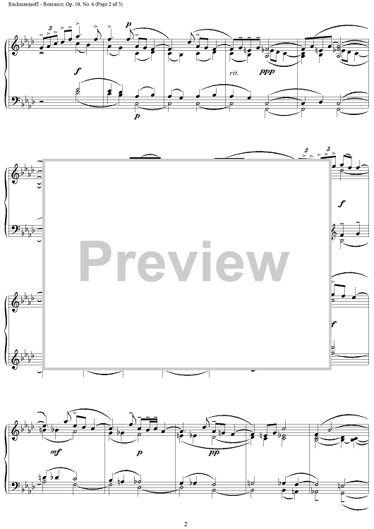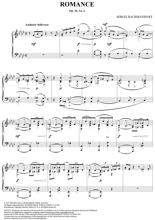 Digital Sheet Music for Romance, Op. 10, No. 6 by Sergei Rachmaninoff scored for Piano Solo; id:255149