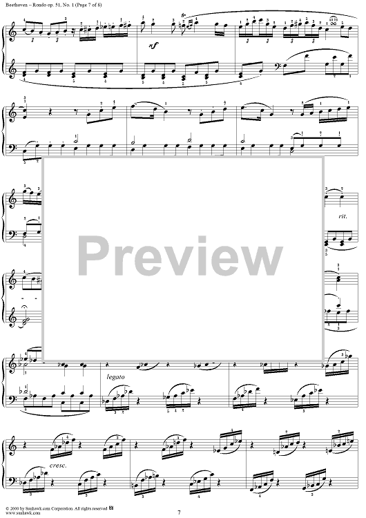 Digital Sheet Music for Rondo in C Major, Op. 51, No. 1 by Ludwig van Beethoven scored for Piano Solo; id:241589