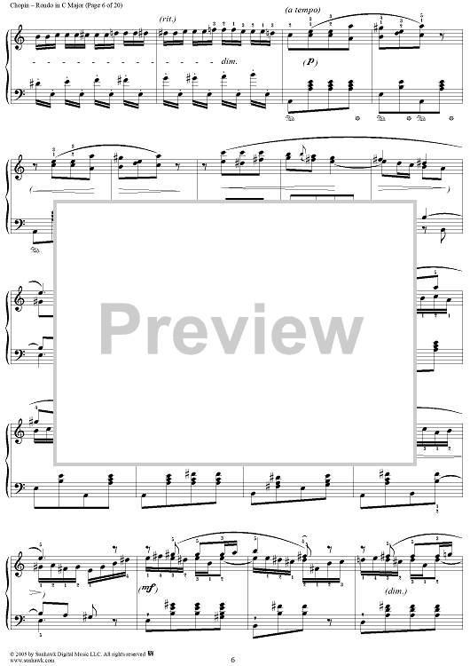 Digital Sheet Music for Rondo in C Major by Frederic Chopin scored for Piano Solo; id:315492